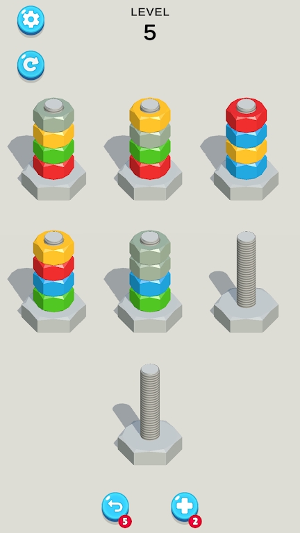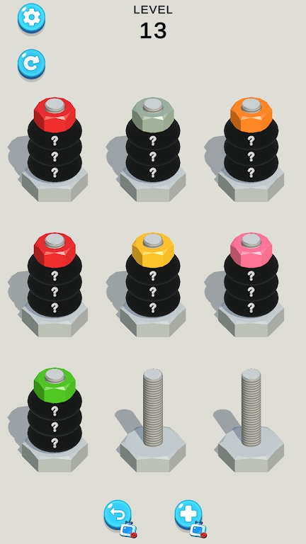 2、非常不简单的益智游戏,需要你能够很好地识别螺母与螺栓之间的各种细微差别,并及时做出正确的分类;