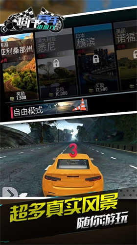 2、有不同的赛车让你去自由的选择,每一款赛车都是不同的操作的感觉,提供了无穷的乐趣。