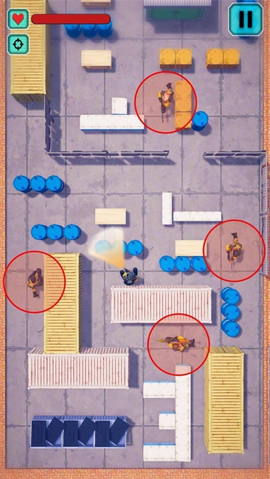 2、只要躲在箱子后面敌人就无法发现你,但是一旦你的主角开火了那么他们就会警觉起来;