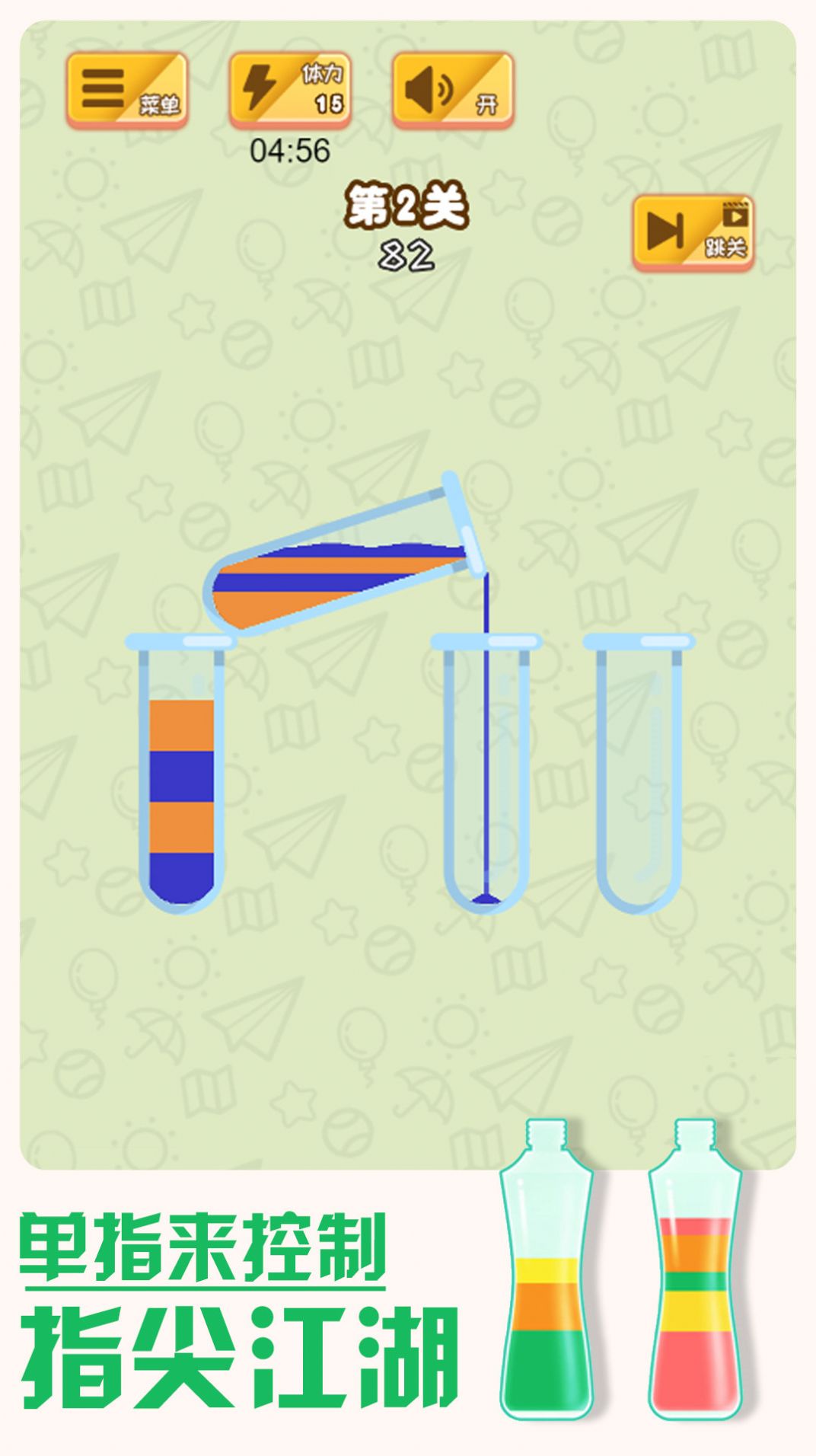 2、需要一定的脑力和分析能力,根据情况判断最优解,倒入试管中;