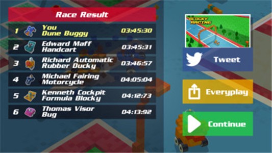 方块卡丁车是一款非常好玩的手机赛车竞速题材游戏,在这款游戏中玩家们能够驾驶用积木拼成的赛车在线进行竞速挑战,游戏中你要小心驾驶你的赛车,因为你碰撞一下你的积木赛车就会变得粉碎,在这里你要小心的驾驶,在游戏中你能够实时在线与其他玩家们进行游戏匹配活动,更多玩法赶快下载体验吧。