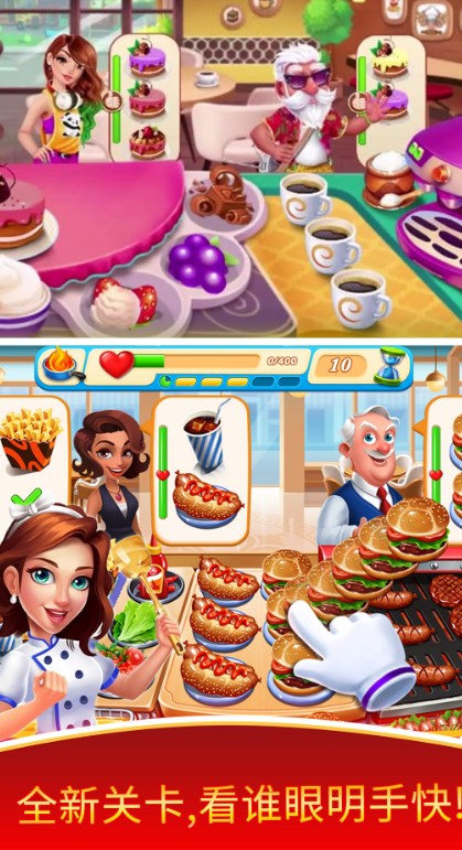 2、大家可以在300多个不同的关卡中享受游戏带来的乐趣,每个关卡都有不同的烹饪任务和挑战性;