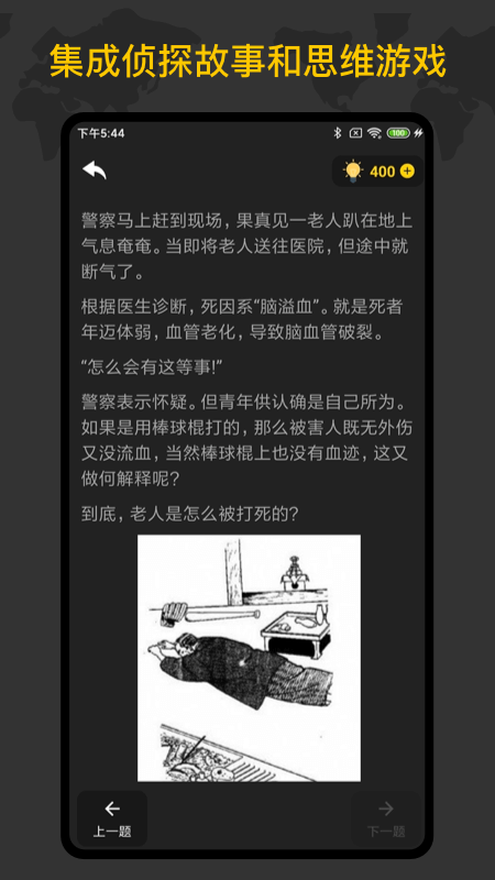 有物理、医学、数学等各种不同类型的难题,玩家需要开动脑筋找出正确的选项,看看你能不能成为大侦探。