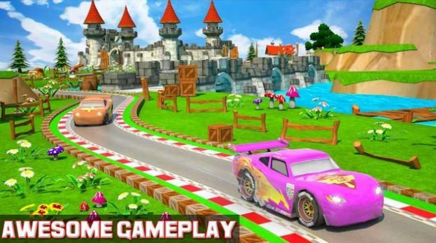 1、卡通简洁的游戏画风,控制着你的赛车在赛道中进行竞技对抗。