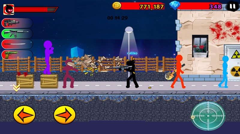 2、敌人的子弹也会攻击你,你需要让自己的火柴人顺利绕过这些。
