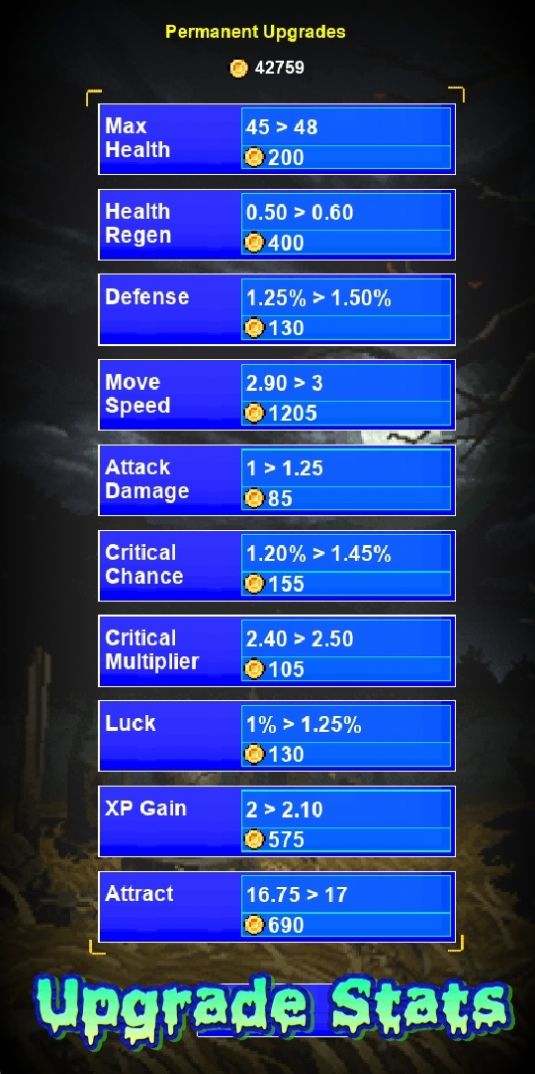 投资您的金币来永久增强您的角色
