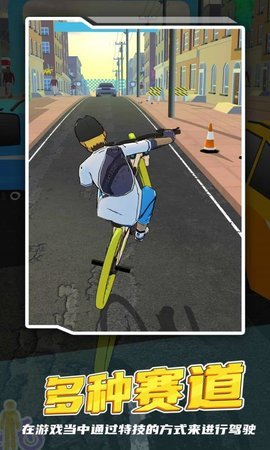 飞车骑行是一款非常有趣的手机自行车竞速题材游戏,在这款游戏中玩家们能够骑行自己的自行车在线体验竞速的快乐,在这里你要骑上自行车在城市赛道中进行模拟闯关游戏体验,非常的好玩有趣,游戏中你能够感受到最丰富的竞速乐趣,还有更多的高难度游戏体验等你前来感受。