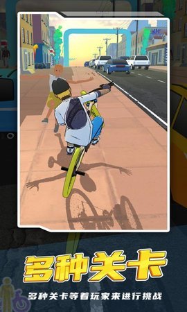 2、飞车骑行多种关卡,花式关卡等着玩家来进行挑战。保持平衡,帅气地避开街道上的汽车和行人。
