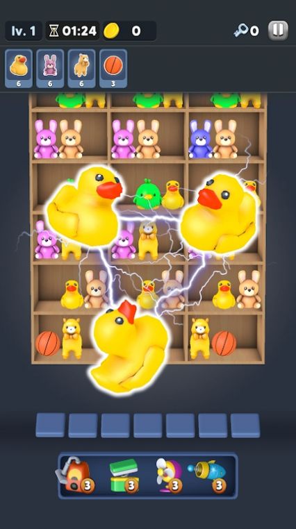 2、创新的三重匹配玩法,交换玩具位置,形成三个或以上的相同玩具进行消除;