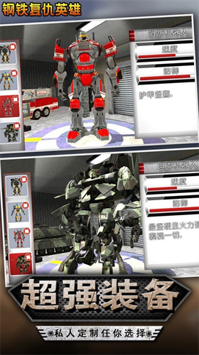 钢铁复仇英雄是一款非常好玩的手机钢铁汽车人变声战斗游戏,在这款游戏中玩家们能够在线控制强大的机器人进行在线战斗,游戏中你能够进行多任务的闯关格斗挑战,利用自己强大的机器人在线消灭各种的敌人,非常的好玩有趣,更多的游戏体验等你前来下载感受。