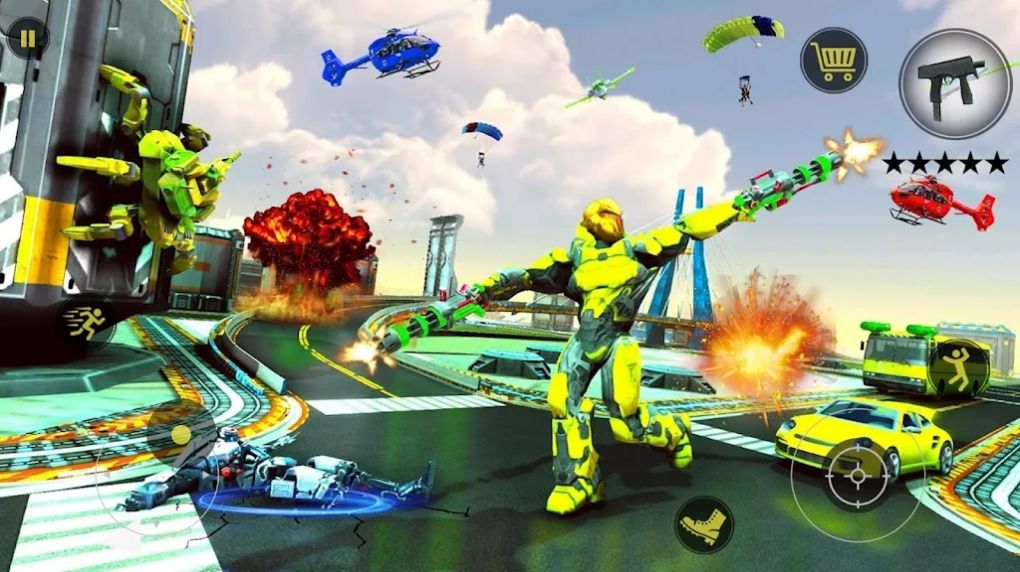 1、升级改造机器人的武器,获得更加强大的威力,更能轻松的打败敌人;