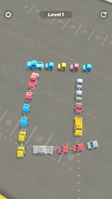 1、每个关卡中都有一组不同颜色和型号的汽车,它们被困在一个拥挤的停车场中。