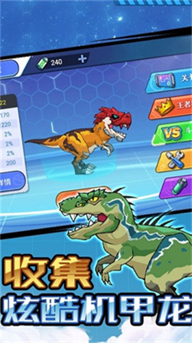 5、各种形状和大小的机械装甲恐龙看起来都非常好斗而且充满活力,休闲有趣的恐龙格斗游戏,3D横版画面,界面非常清晰细腻。