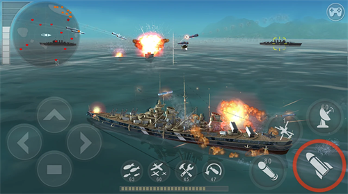3、使用各种炮弹来不断的让敌人的战舰贯穿和着火,多种击沉对方战舰的方式挑战。