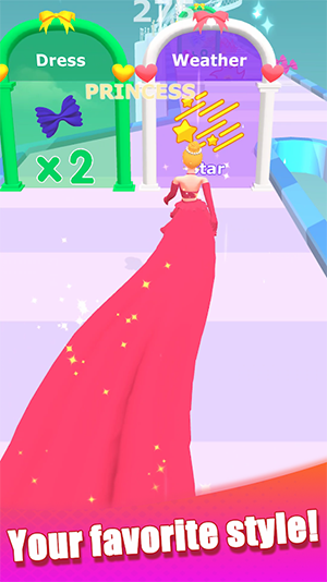 5、成为礼服公主,避开障碍物并完成时尚跑道。