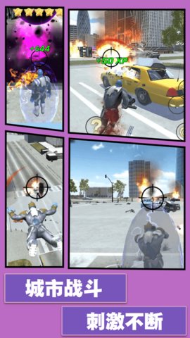 1、成为英雄,完成打击犯罪的各个过程。这是非常愉快的,有趣的射击战斗将摧毁所有的敌人。
