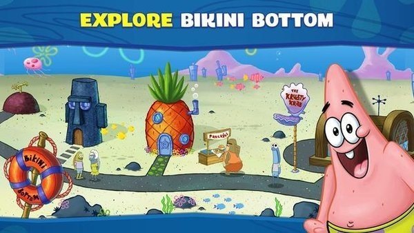 2、与蟹老板、派大星、章鱼哥、珊迪还有许多熟悉的面孔互动。