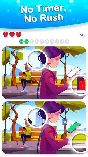 1、在限定时间内找出两张相似图片中的不同,顺利解谜;