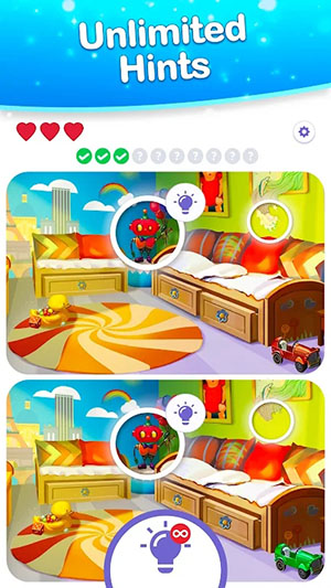 3、无法找到不同之处,可以使用提示功能,花费金币解锁提示来找到差异。