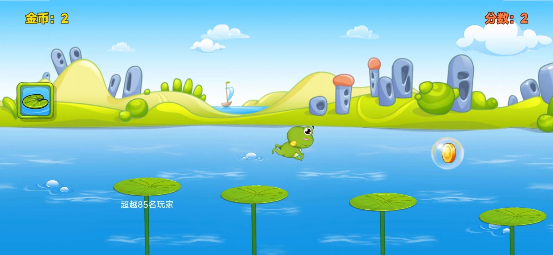 1、采用触屏操作,只需通过点击屏幕或者滑动屏幕就可以控制青蛙跳跃或者滑行;