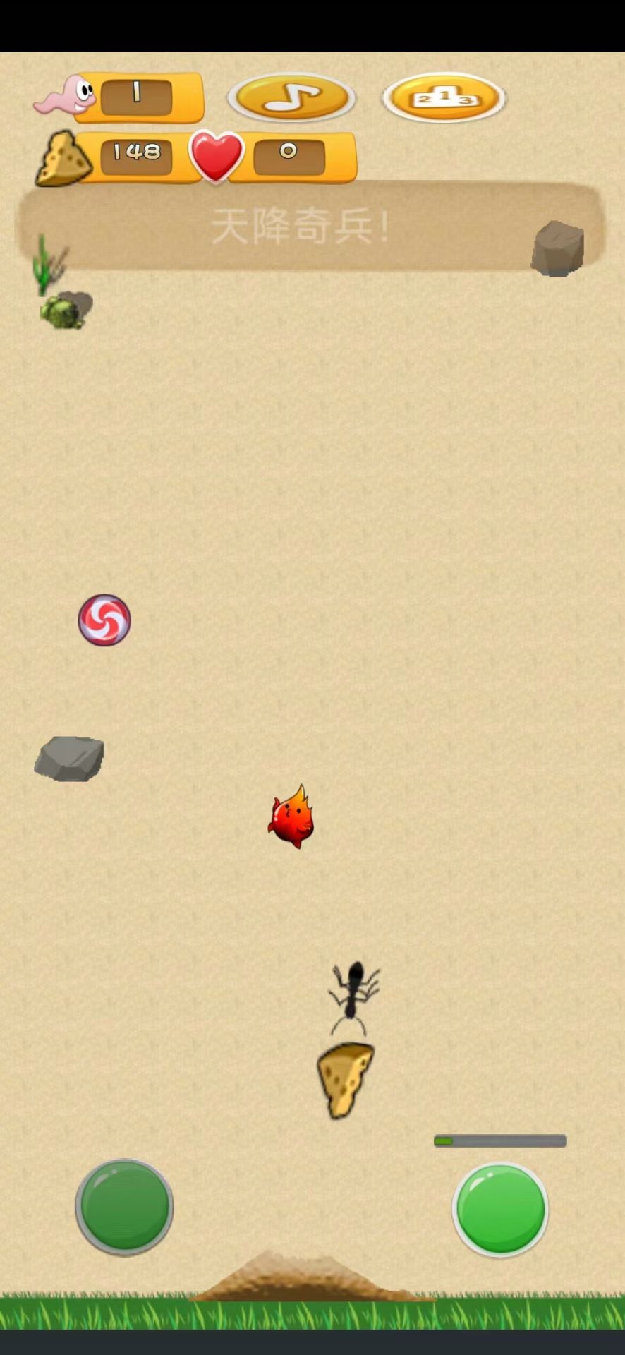 1、通过点击或滑动屏幕来控制火蚂蚁的移动和攻击方向;