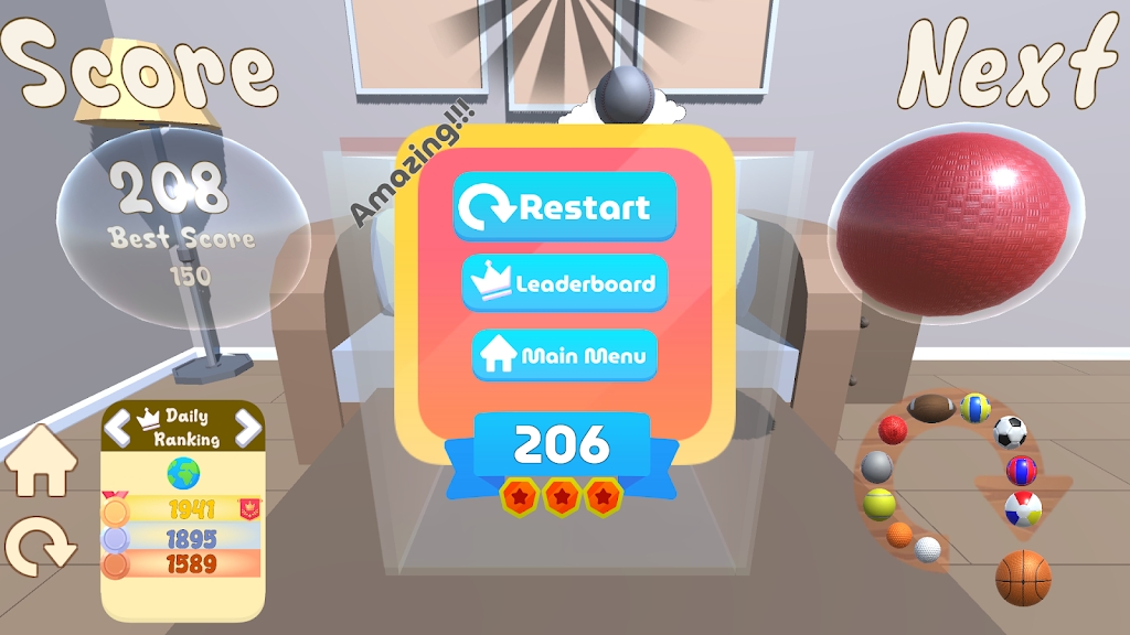 2、多样化的小球合并玩法,通过不同的组合获得更高的分数;