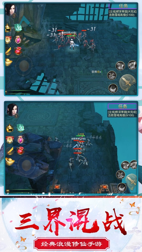 2、真实MMORPG体验,与好友组队完成各种挑战,一起体验仙侠冒险的乐趣。