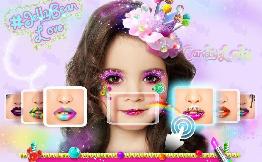 应用虚拟眼影,唇膏,闪光,成衣外观,让自己的视频直播自己的糖果风格改变。
