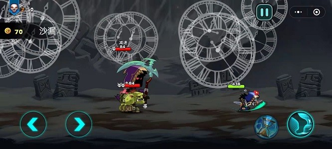 3、战斗界面简单但具有战略意义。左手控制左右移动,右手控制技能释放。主角会自动攻击怪物。