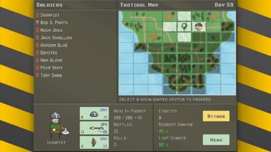 2、独特的像素艺术风格,带你进入一个充满幽默和愚蠢的战争世界。
