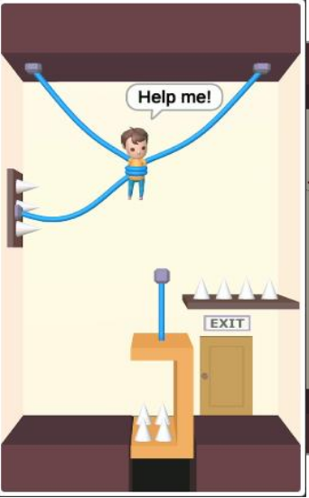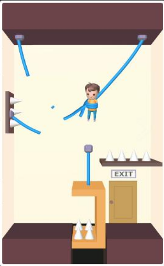 1、在游戏中,您将面临多个难度级别的关卡,需要通过切割绳子来解救被卡住的小人并完成目标。