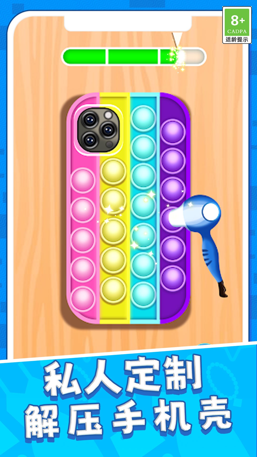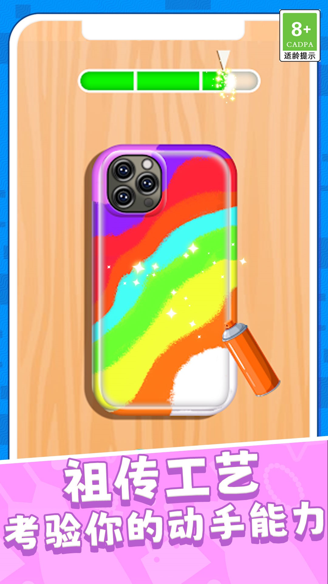 1、游戏允许玩家自定义手机壳的各个部分,包括边框、背景、按钮等;