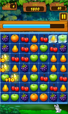 游戏中会有一个方形的棋盘,上面摆满了各种不同类型的水果。