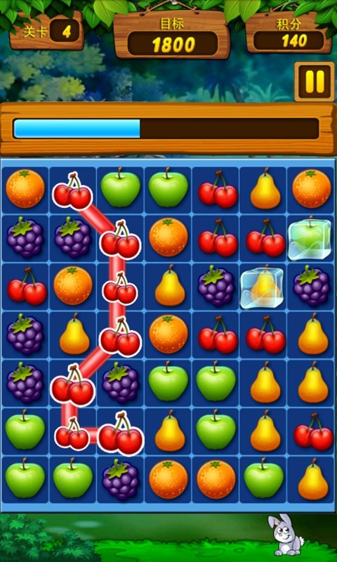 玩家需要按照要求用少的步数将相同的水果连起来,不同的水果就要剔除在外。