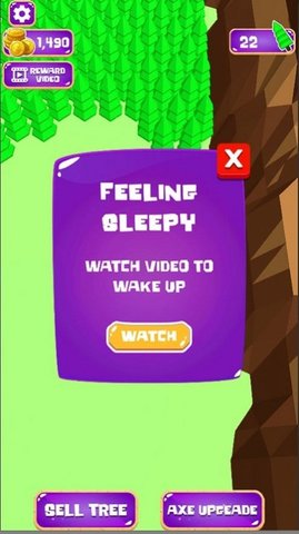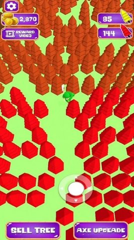 2、只需用你的手指砍倒你面前的树木,不断砍伐树木即可获得相应的奖励。升级你的斧头以提高切割速度。