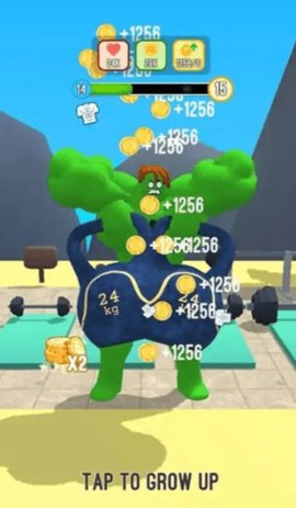 1、你需要在有限的时间内以最快的速度点击屏幕,击中各种健身器材和物体来获得积分并升级。