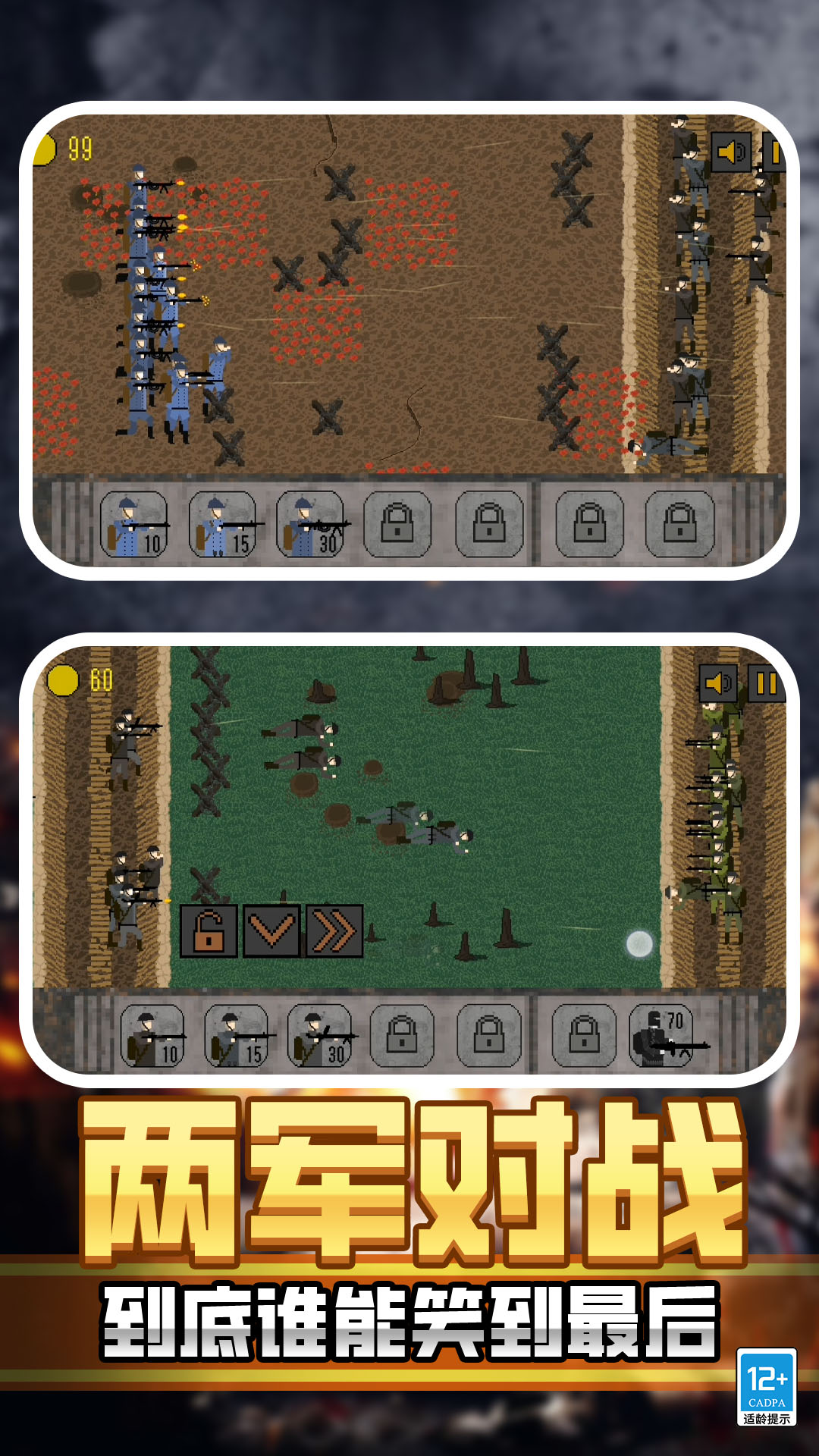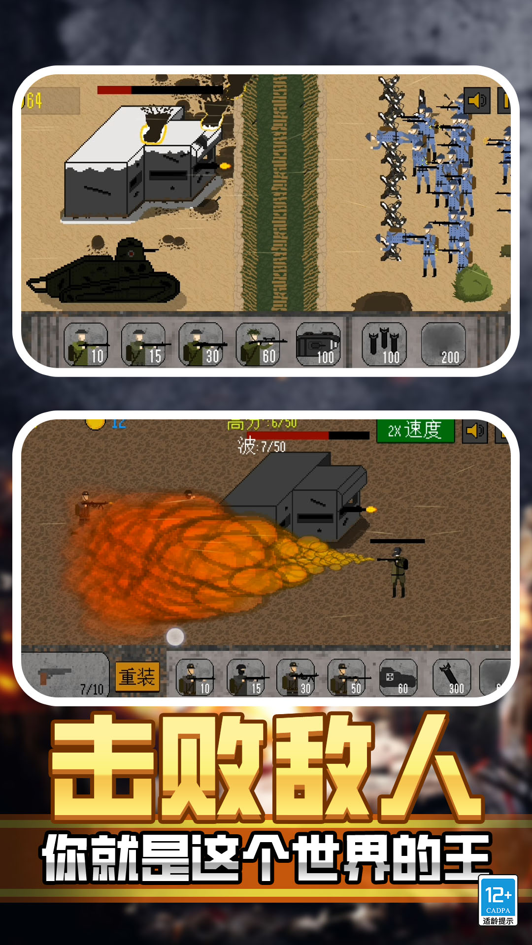 3、精美高清的像素化画面和炫酷的特效,让您身临其境地感受战争的紧张和刺激;