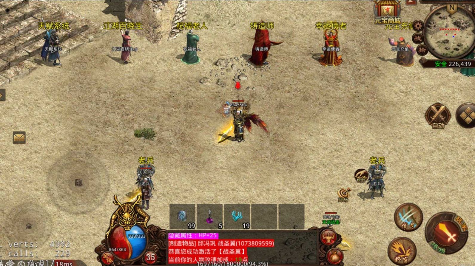 2、无限刀,自动捡物,自动回收,自动挂机,装备好爆,元宝好打,轻松感受游戏乐趣!