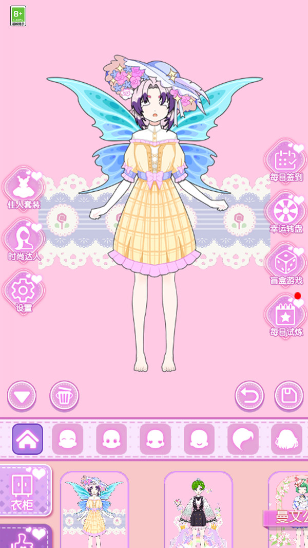 1、海量服装,玩家能够根据自己的兴趣,运用各种配饰来打扮女孩的形象。