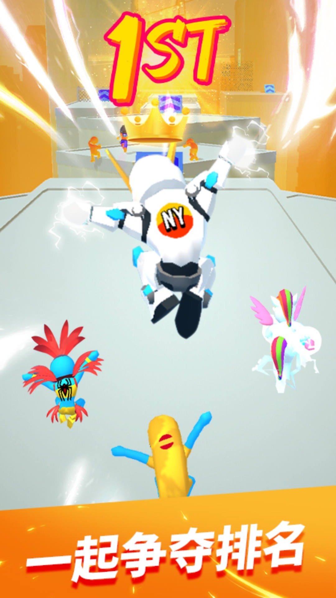 2、华丽的赛道上,你将克服重重的困难,与小伙伴进行比拼,冲击最终的榜单!