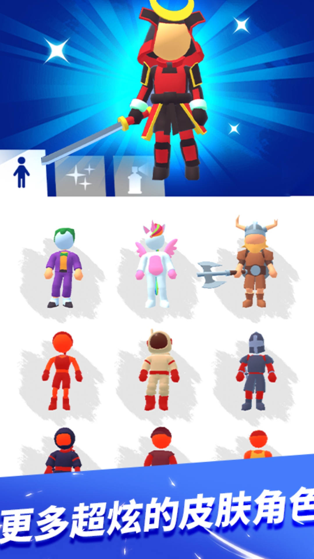 1、选择角色,奔跑跳跃,穿越障碍物,前进到更高的关卡;