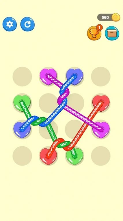 1、通过手指在屏幕上操作,让线团互相穿过,达成解谜目标;