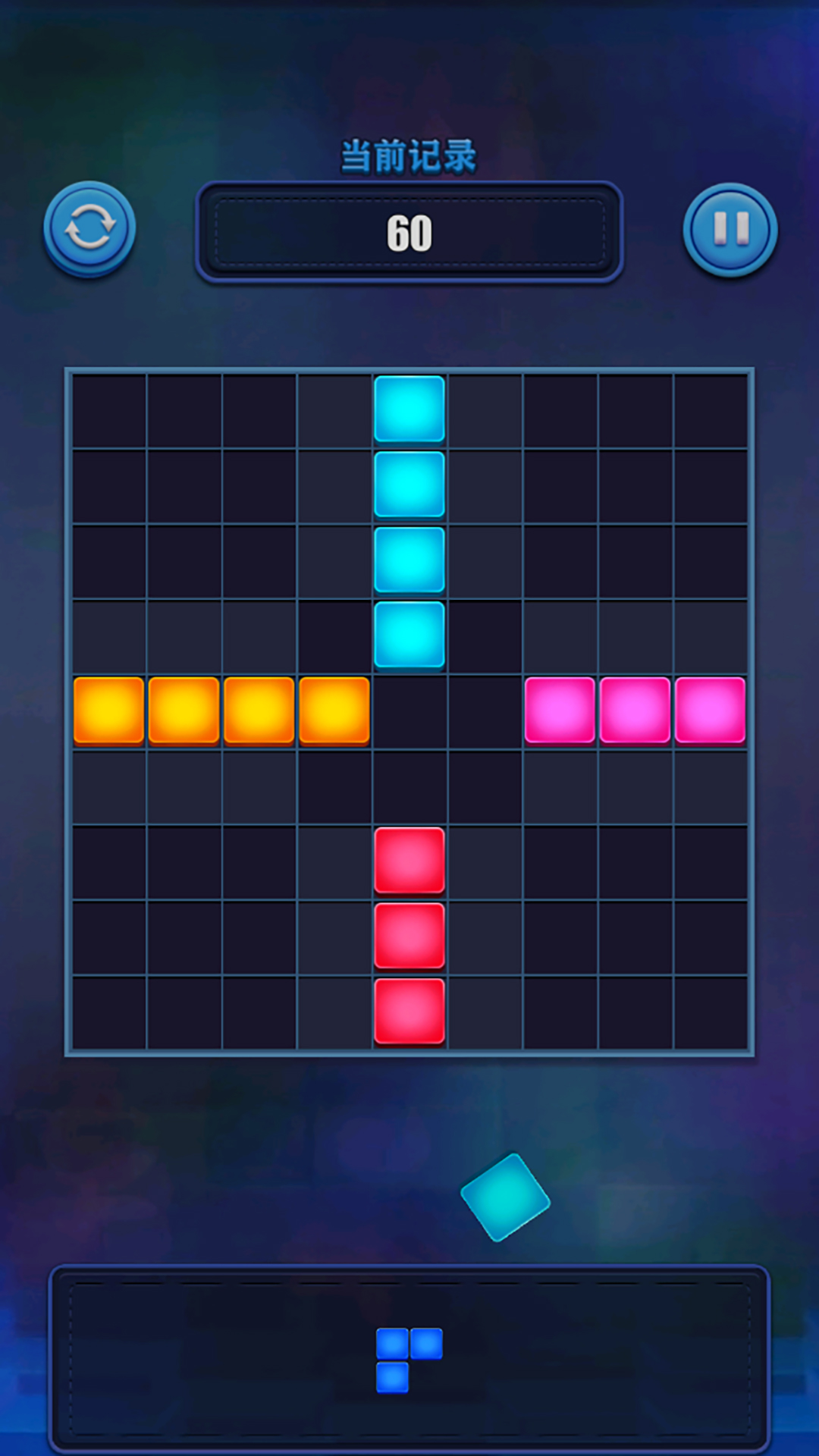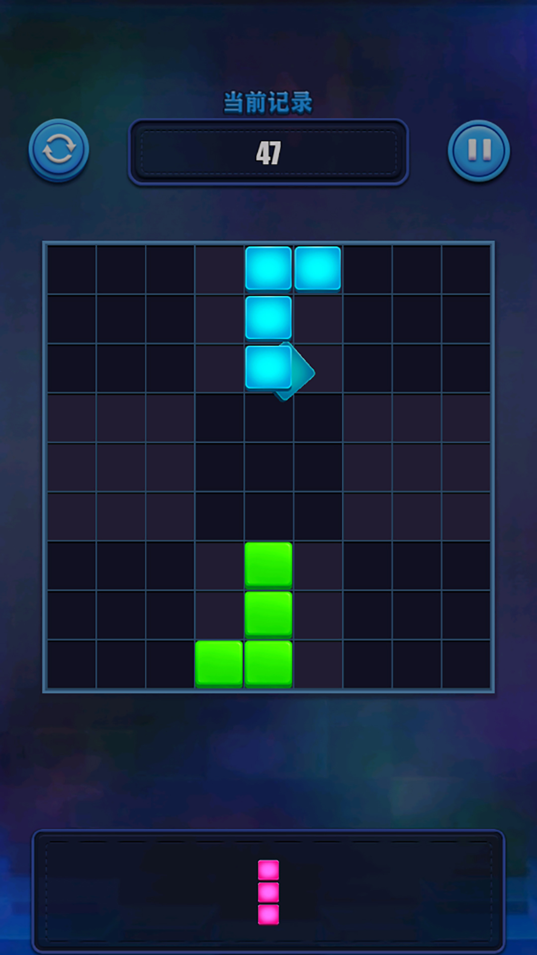 1、通过灵活移动、巧妙旋转和精准摆放方块,完成行消除;