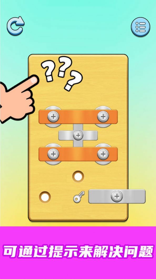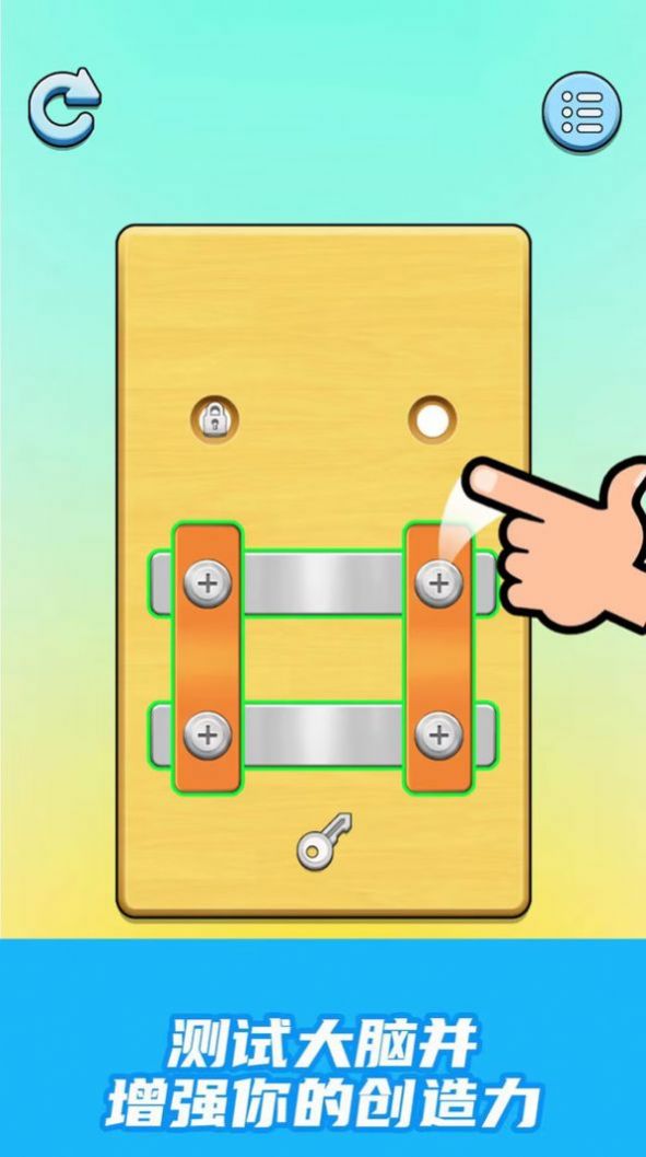 1、让玩家需要通过旋转螺丝的方式解开各种复杂的机关。游戏中的关卡设计独特,