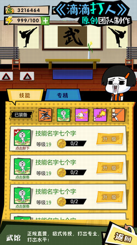 3、超多技能可以学习,拳馆里可以提高自己的角色能力,各方面的属性不断提升,战斗力也会随之增强。