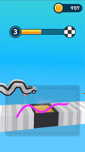 1、画一条线向前:通过控制蛇形车画一条曲线向前移动,你可以感受到独特的操作乐趣。具有挑战性的升级,