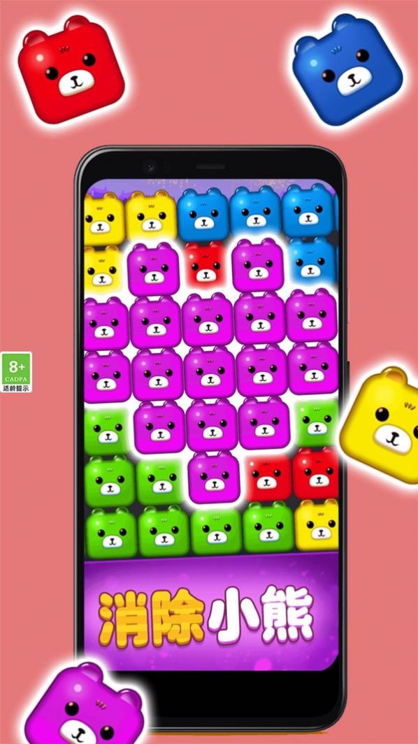 1、滑动屏幕交换相邻的熊熊元素,形成三个或以上相同元素的直线或横线消除;