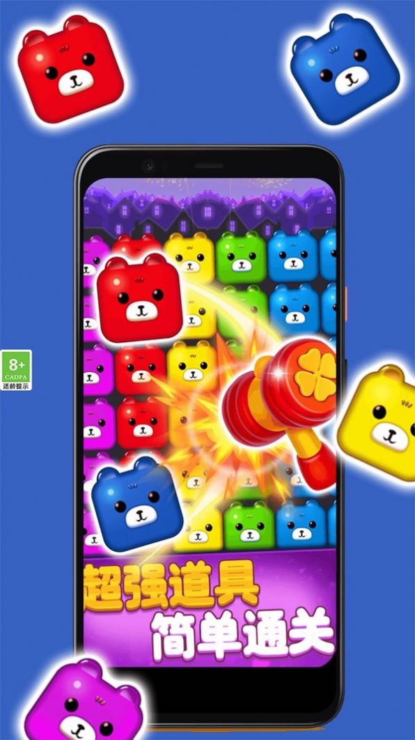 2、独特的熊熊养成系统,通过消除获得资源,装扮和升级你的专属熊伙伴;