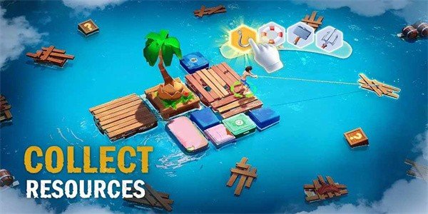 1、我们在木筏当中进行生存,收集各种物资来进行合理的建造,打造自己的家园,逐渐的扩大。