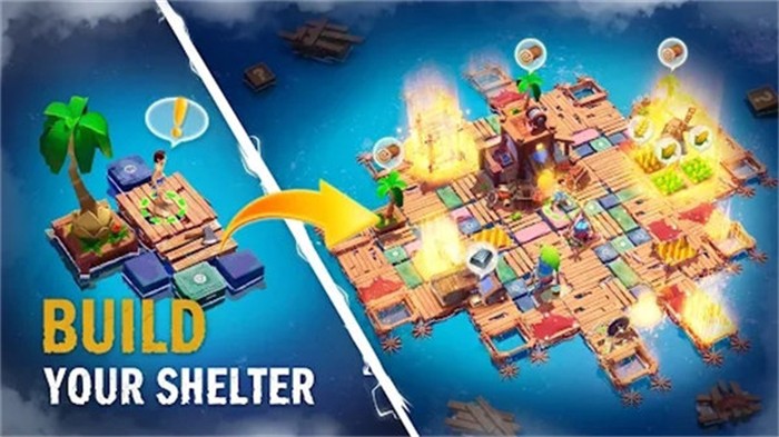 2.探索小岛,获取更多资源,建造世界末日避难所,对抗僵尸,探索无尽的海洋,并尽一切努力建立和扩大避难所;